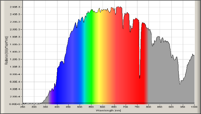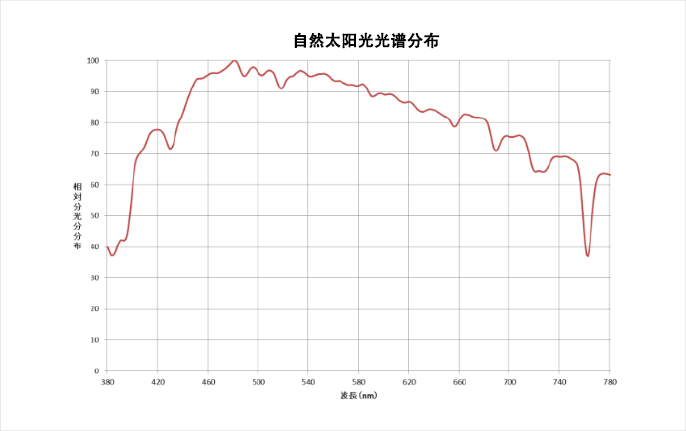 这是本公司测量的自然太阳光的光谱分布。