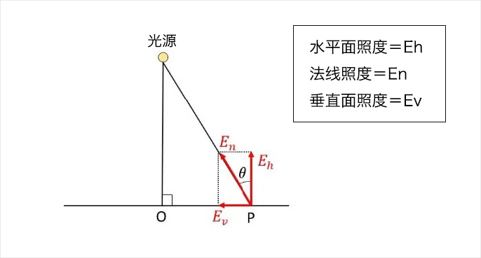 水平面照度可理解为来自上方的光,法线照度是相对于光线垂直入射的光,垂直面照度则是来自前方的光。